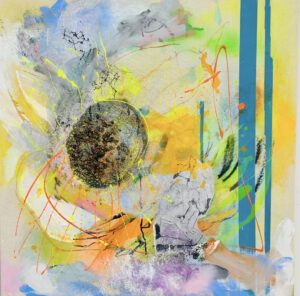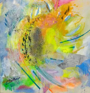 Nr. III aus der Serie: Hiomage to the sunflowers: Eine abstrakte Arbeit, Leuchten zwischen Energie und Stille. Diese Serie entfaltet ein Feld aus Licht, Bewegung und Farbe – eine Ode an Lebenskraft und Vergänglichkeit.